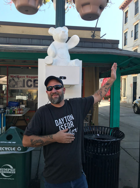 The comforting glow of a nightlight and the nostalgia of childhood toys are combined to create this light-based installation. Composed of 7 giant nightlights, each one is shaped like a different vintage toy plugged into a large constructed outlet. Motion sensors embedded in the front of each nightlight activate the pieces, lighting up the nightlights when people pass in front of them. Each giant nightlight (approximately 5 ft tall) were installed around Findlay Market, and when people walked in front of the sensors, the nightlights turned on for a short time. The longer people interacted with the sculptures, the longer the nightlights glowed. The focal point of each nightlight is a cast-resin large replica of classic popular children’s toys - paying tribute to Cincinnati’s history with toy making. Frosted white large reproductions of the toys (i.e. a dinosaur, teddy bear, robot, etc) perch in the outlets, waiting for people to light them up!